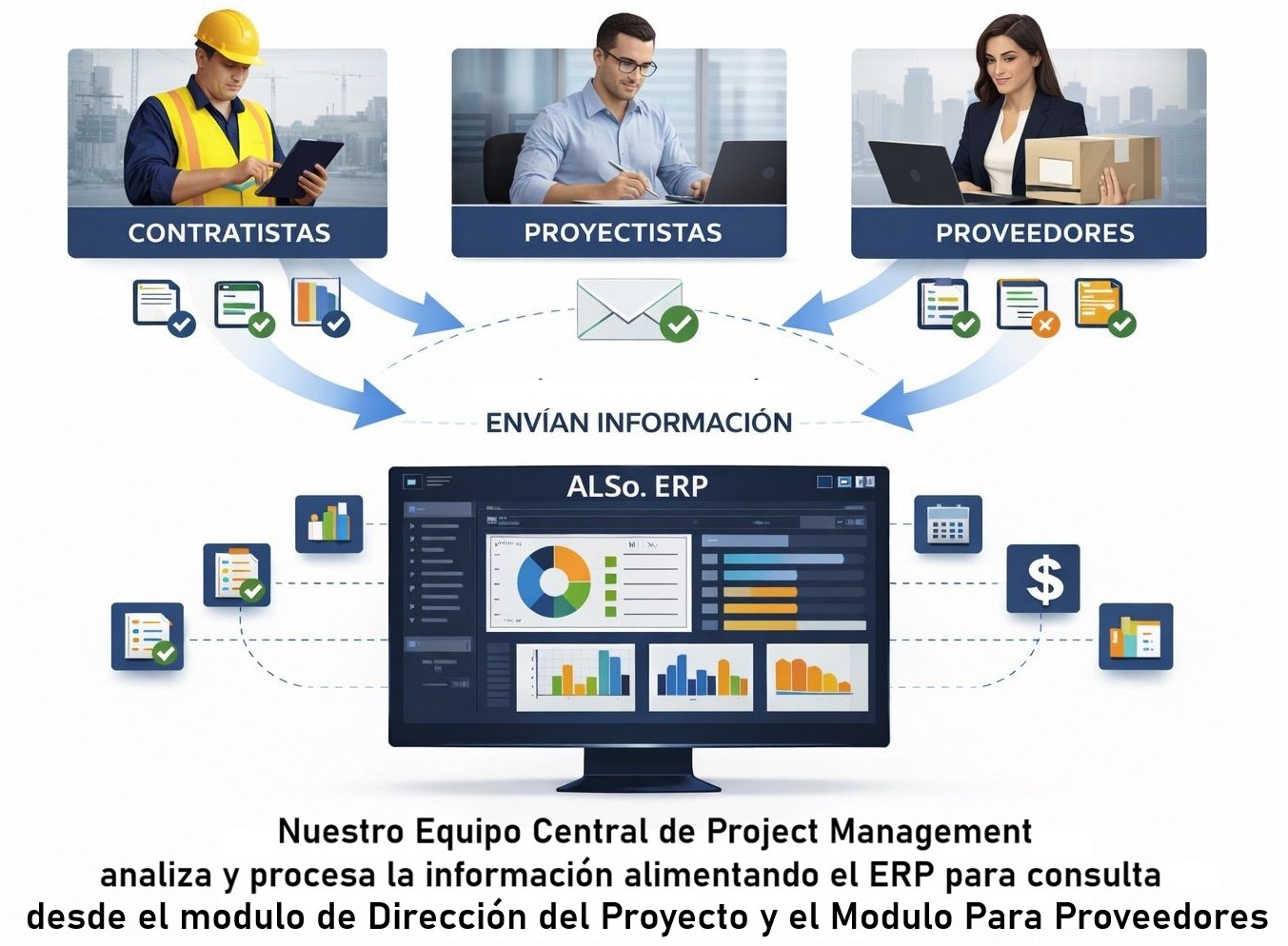 Por lo anterior nuestro ERP se convierte en el único medio valido para la comunicación formal entre proveedores y la dirección del proyecto pudiendo enviar la información por dos canales: